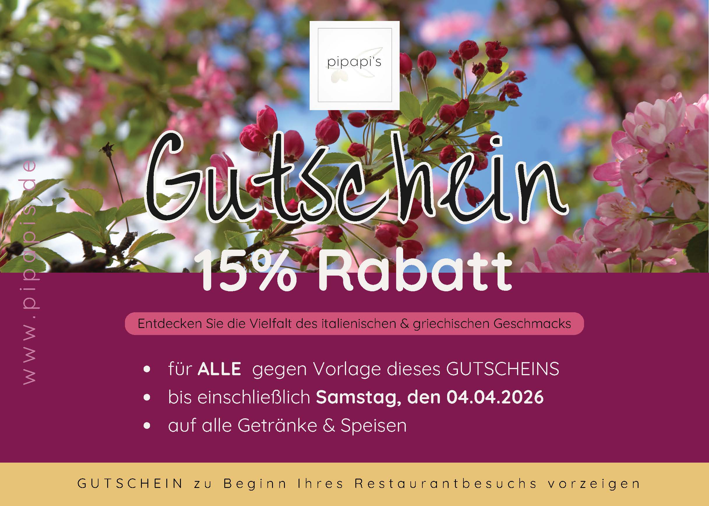 Für alle SV-DJK Mitglieder gibt es gegen Vorlage mit diesem Gutschein 15% Rabatt auf alle Getränke und Speisen für bis zu 6 Personen. Der Rabatt gilt bis zum 04.04.2026. Den Gutschein kann man hier herunterladen.